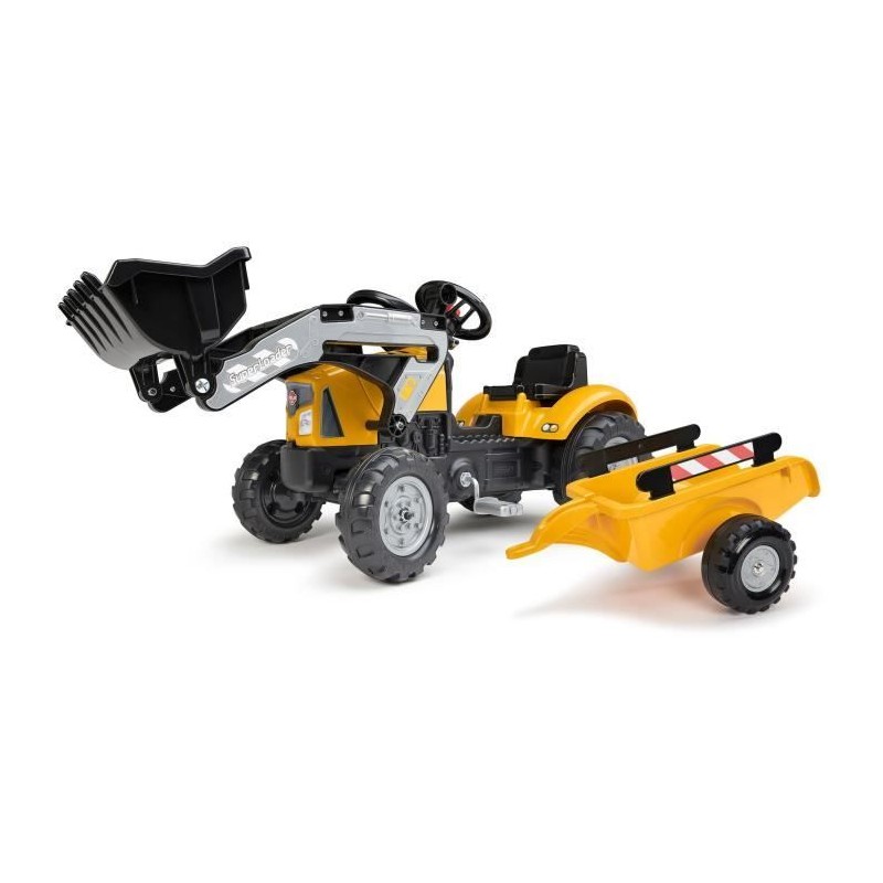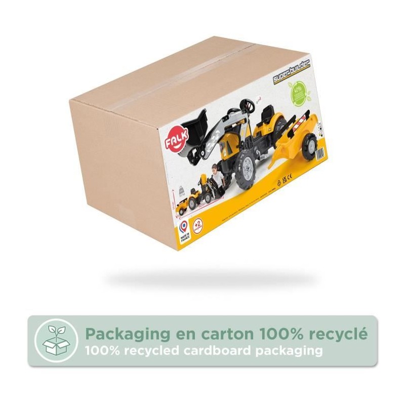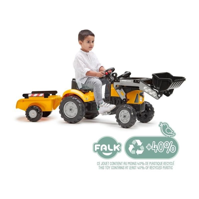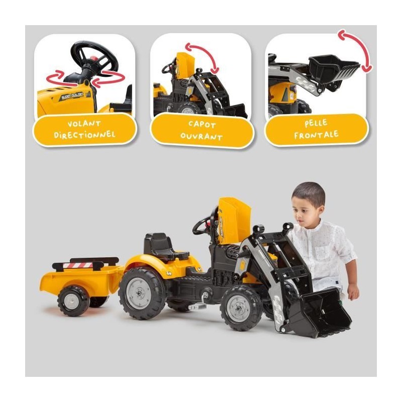 Tractopelle a pédales SuperBuilder - FALK - Volant directionnel, Remorque - Fabriqué en France, 40% de plastique recyclé - De