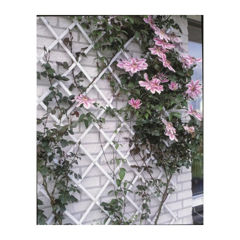 Treillis extensible en plastique - S'adapte en largeur - Idéal pour la décoration d'un mur ou le palissage de plantes grimpantes en facilitant leurs croissances - Livré avec son set de fixation - Profil 23x7 mm - Coloris blanc - 50 x 150 cm.
