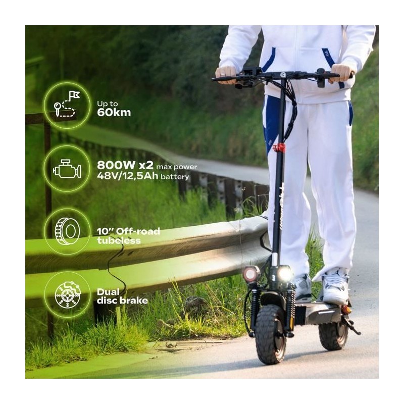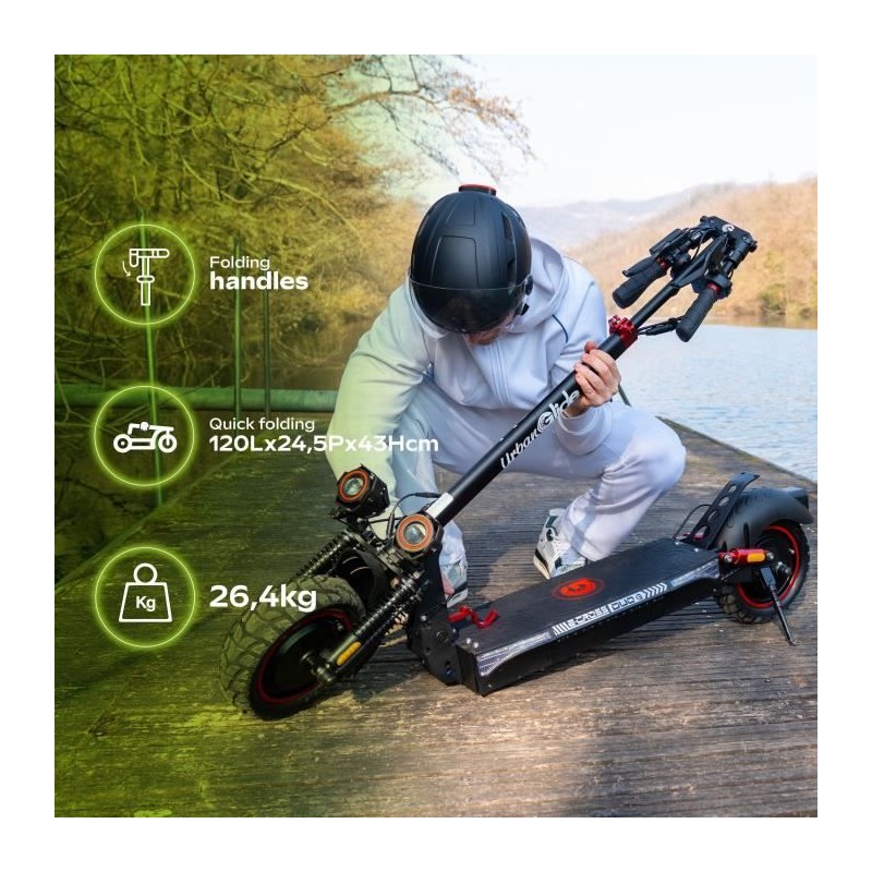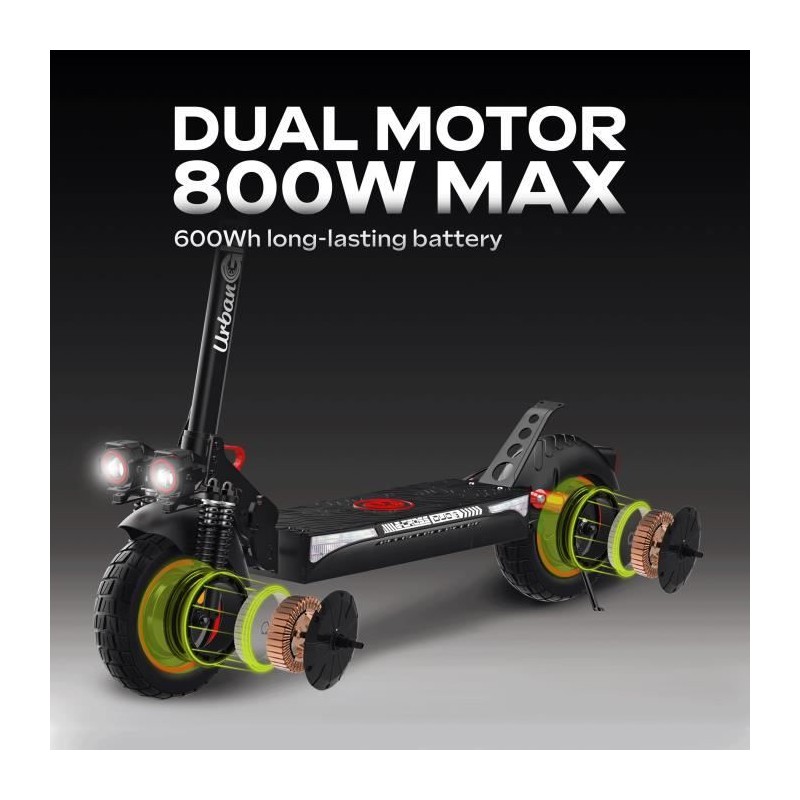 Trottinette électrique - URBANGLIDE - ECROSS DUO - 800 W - Pneus 10 - Max 25 km/h - Autonomie jusqu'a 60 km