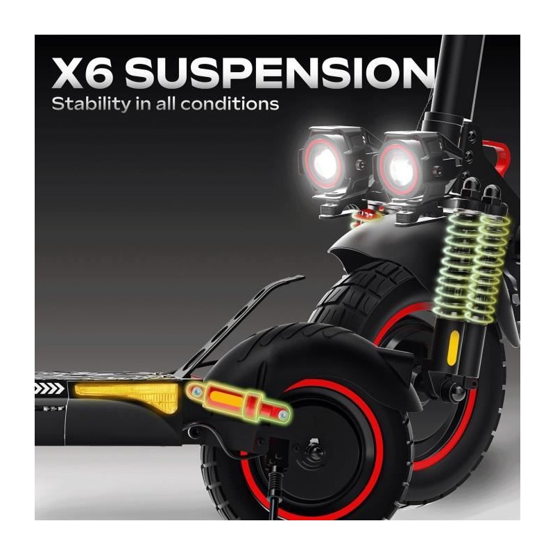 La trottinette électrique UrbanGlide E-Cross Duo est taillée pour la puissance et l'aventure, avec ses deux moteurs de 800W, une autonomie jusqu'a 60 km et une vitesse max de 25 km/h. Grâce a ses 6 suspensions et ses pneus 10 pouces tout-terrain, elle offre un confort optimal, meme sur les terrains difficiles. Son double frein a disque, son indice IPX5 et ses fonctionnalités pliables (poignées et guidon) en font un modele sécurisé, pratique et ultra-polyvalent pour les utilisateurs exigeants.