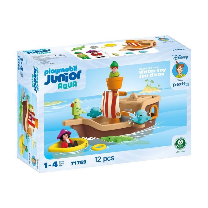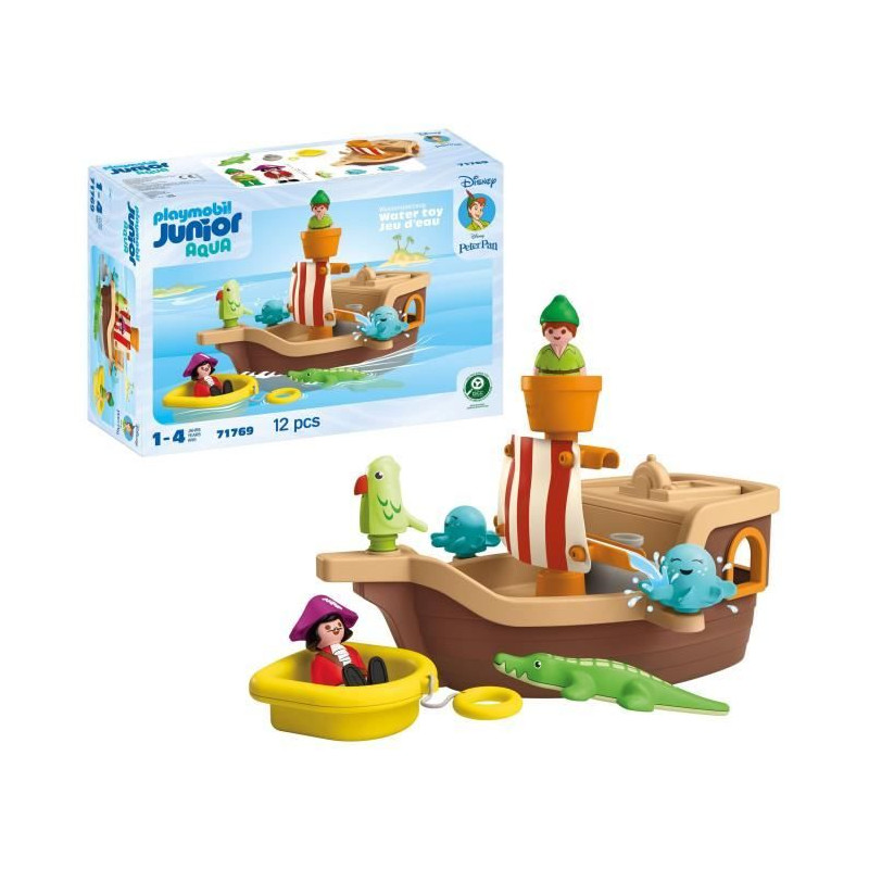 Découvrez le jouet PLAYMOBIL Junior 71769 avec Peter Pan et son bateau pirate. Ce set de 12 pieces est conçu pour les enfants des 18 mois. Fabriqué avec plus de 90 % de plastique biosourcé, il allie plaisir et respect de l'environnement.