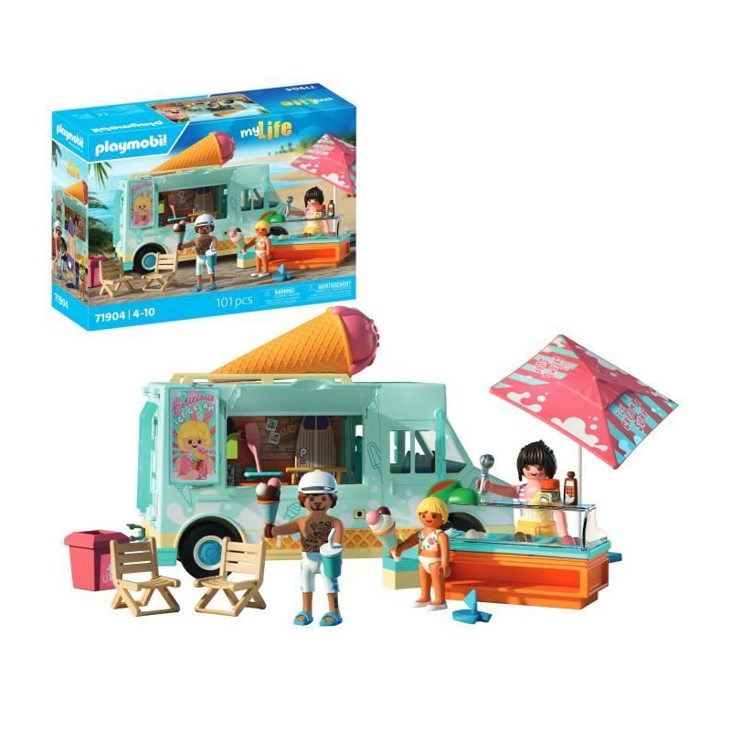 Playmobil 71904 Camion vendeur de glaces & 3 personnages, My Life Vacances a la plage, Design rétro années 50, 101 pieces, des