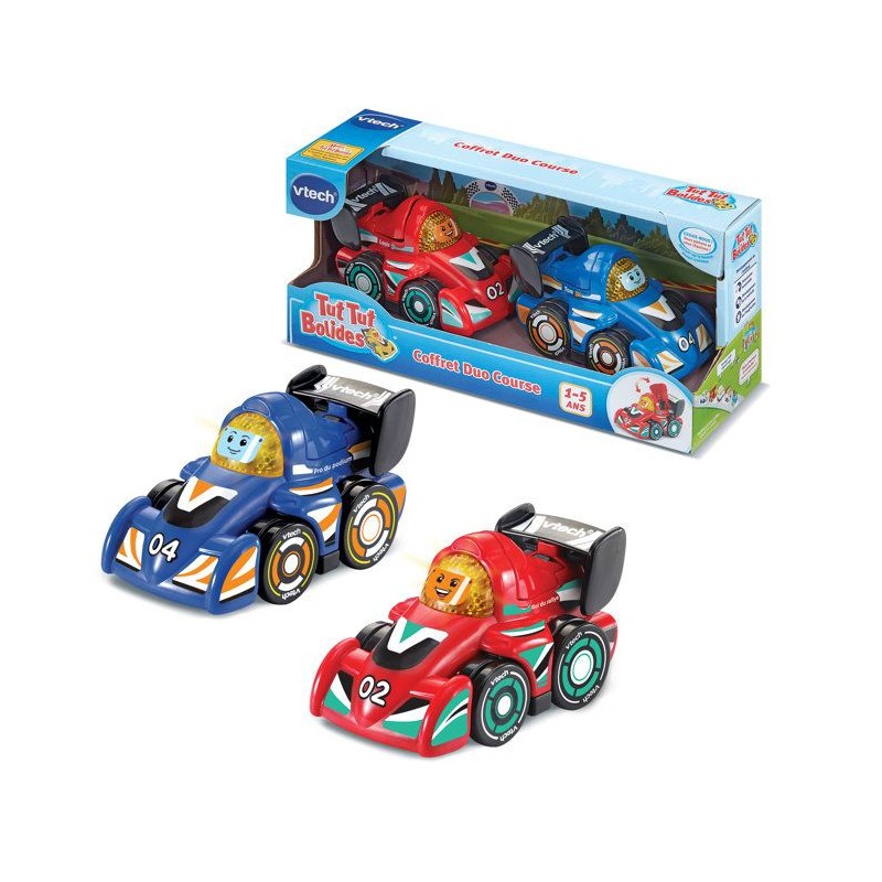 Tut Tut Bolides - Coffret duo course - 1 - 5 ans Les Tut Tut Bolides entrent dans la course ! Deux véhicules colorés pour des courses a toute allure. Un bouton lumineux en forme de visage rigolo déclenche 3 chansons,des mélodies, des phrases et des effets sonores réalistes. Les Tut Tut Bolides accompagnent Bébé da