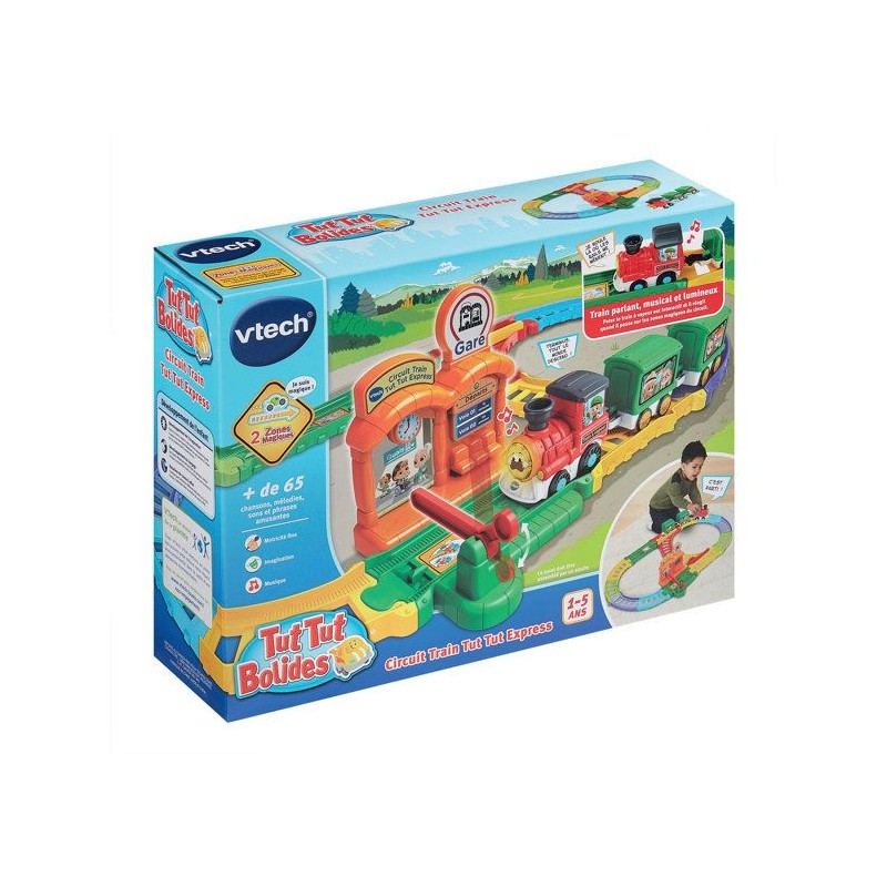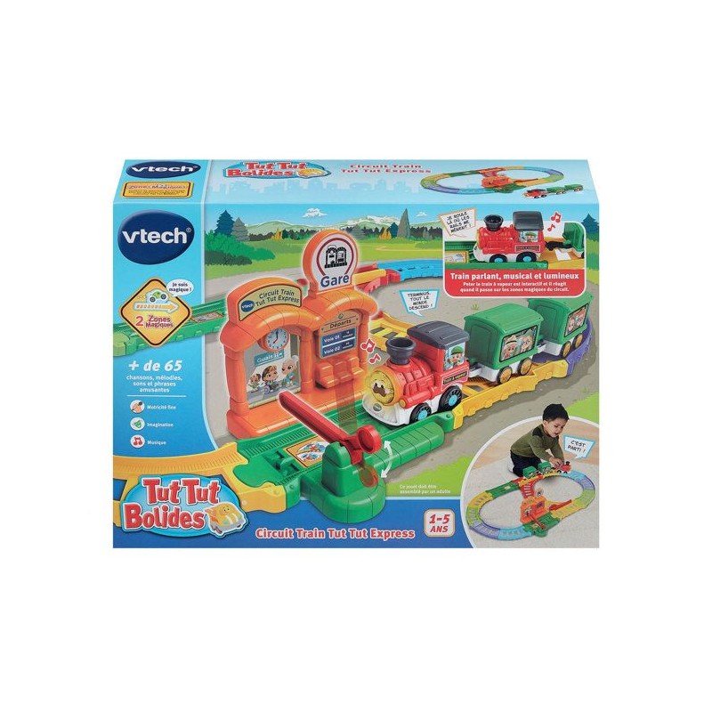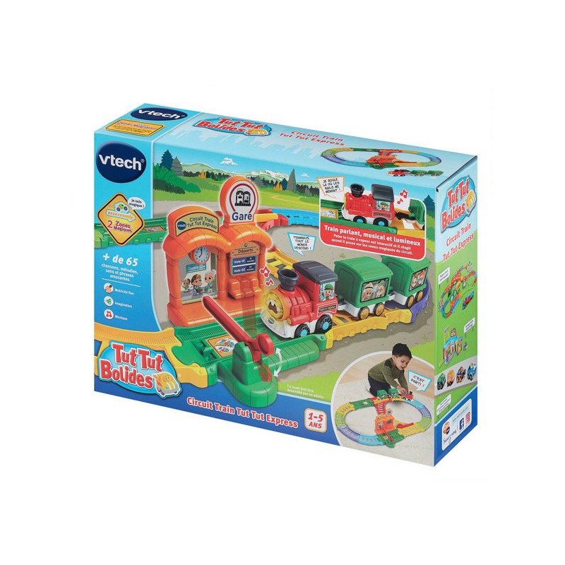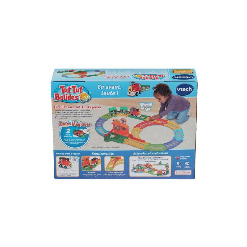 Tut Tut Bolides - Circuit train tut tut express (+ Peter train a vapeur) - 1 - 5 ans Un circuit train plein de rebondissements pour des aventures a toute vapeur ! Une mission spéciale a accomplir ? Peter, le train a vapeur, est pret a foncer sur les rails ! Il démarre depuis la gare puis choisit sa direction grâce a