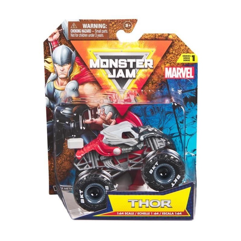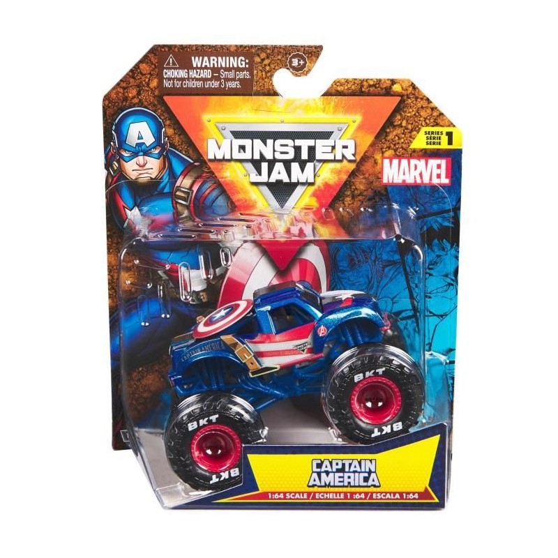 Véhicules officiels des shows Monster Jam aux designs des héros de l'univers Marvel. True Metal échelle 1:64e.