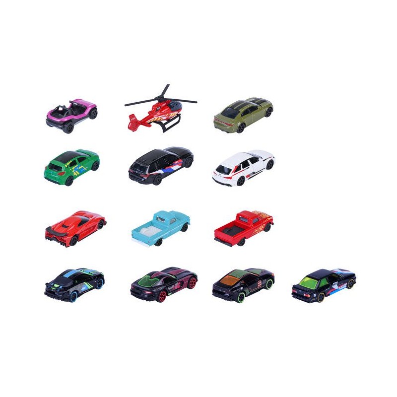 Retrouvez les automobiles les plus célebres au format mini et en métal grâce a Majorette ! Véritables passionnés ou simples amateurs vous trouverez votre bonheur parmi les nombreuses gammes que présente la marque ! Ce grand coffret se compose de 13 véhicules a roues libres : 9 classique et 4 édition limitée sous le theme des graffitis. Vous serez vite séduit par ces véhicules a l'échelle 1/64eme. Certaines disposent de parties ouvrantes, d'amortisseurs et de phares translucides. N'hésitez plus a commencer une nouvelle collection ou a amuser vos enfants avec ces petites voitures ! A partir de 3 ans.
