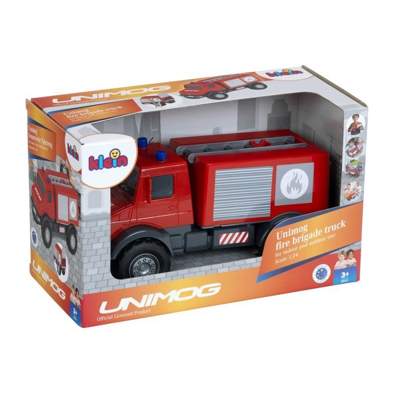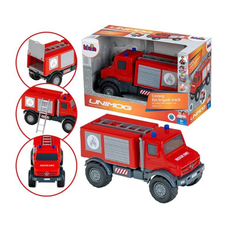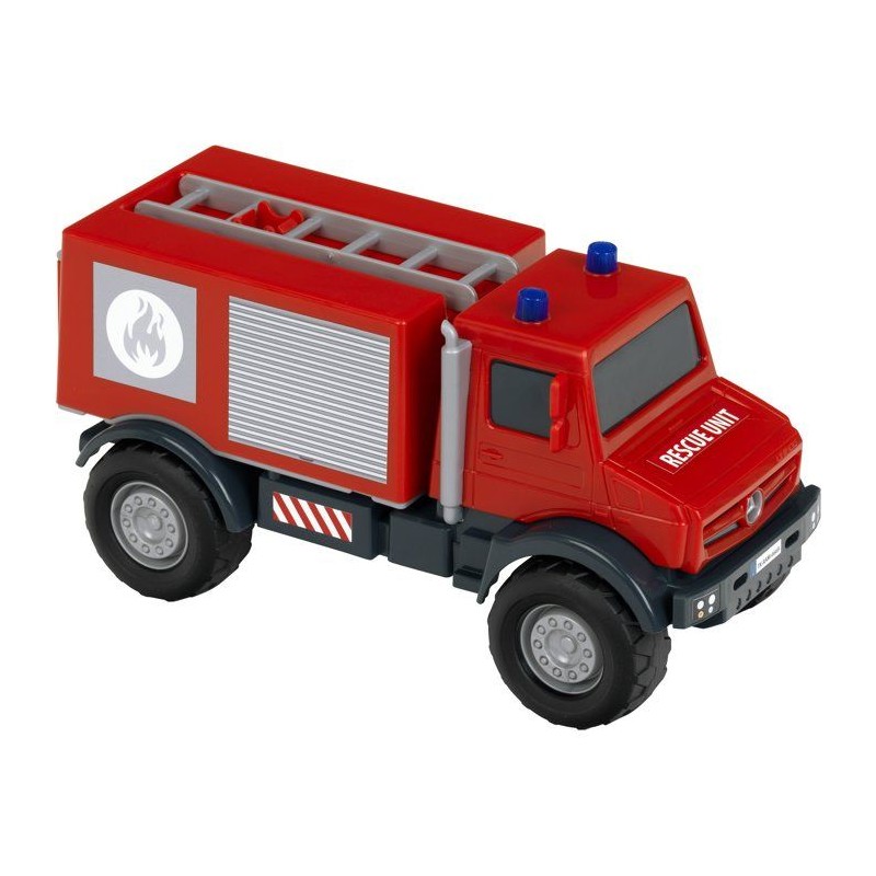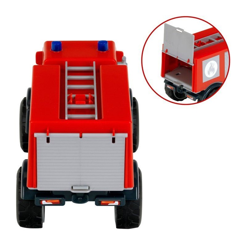 Camion de pompier tout-terrain - KLEIN - 3600 - Mercedes Unimog - Roues souples et hayon arriere ouvrable - Échelle 1:24 - Des