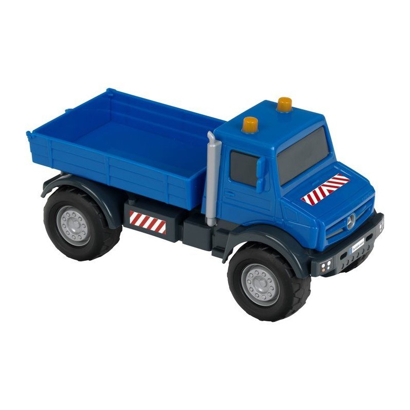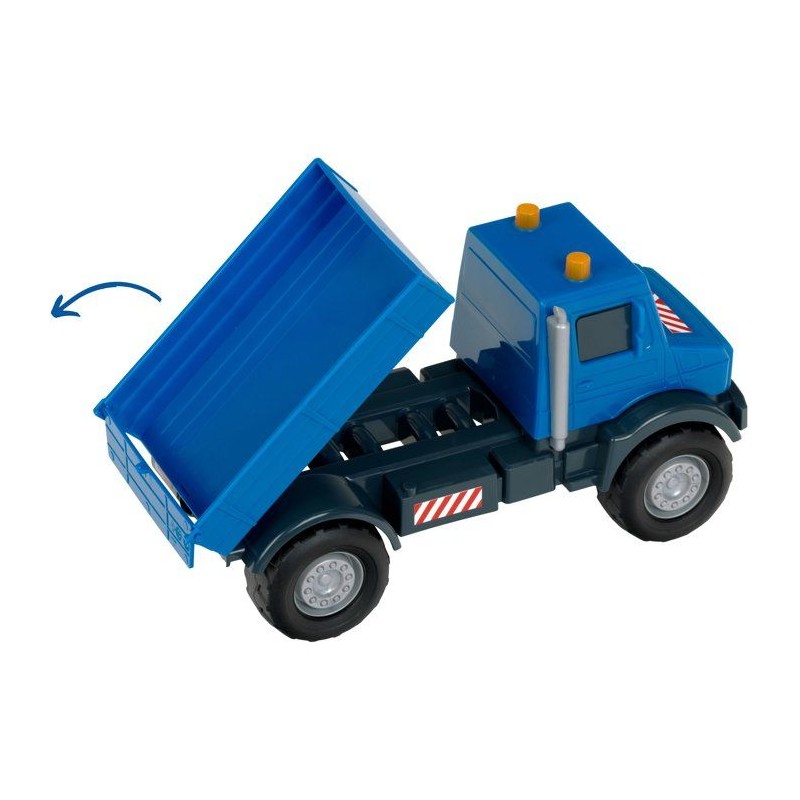 Faites vivre l'imagination des enfants avec ce camion-benne tout-terrain sous licence Mercedes-Benz Unimog tres réaliste. Fabriqué en plastique de grande qualité, il est doté de grandes roues souples idéales pour une utilisation en intérieur - sans faire trop de bruit - comme en extérieur (jardin, bac a sable, etc.). Il possede une grande benne basculante équipée d'une trappe qui s'ouvre lors du déchargement, les enfants adoreront cette fonction. C'est une certitude, ce camion-benne saura se rendre indispensable sur tous les chantiers. Stimule l'imagination, la créativité et l'habileté manuelle des enfants. Echelle 1:24. Dimensions hors emballage : 24 x 12 x 11 cm. Fabriqué en Europe. A partir de 3 ans.