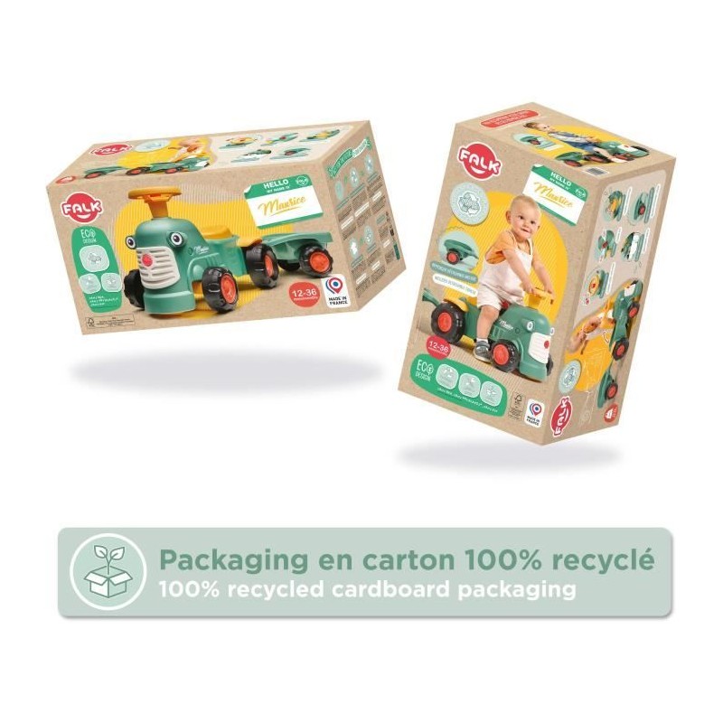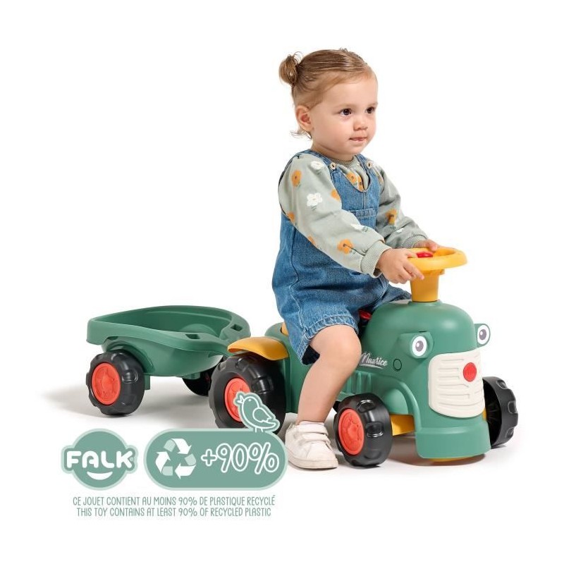 Porteur tracteur Maurice - FALK - Volant directionnel et remorque - 100% Fabriqué en France - 90% de plastique recyclé - Des 1
