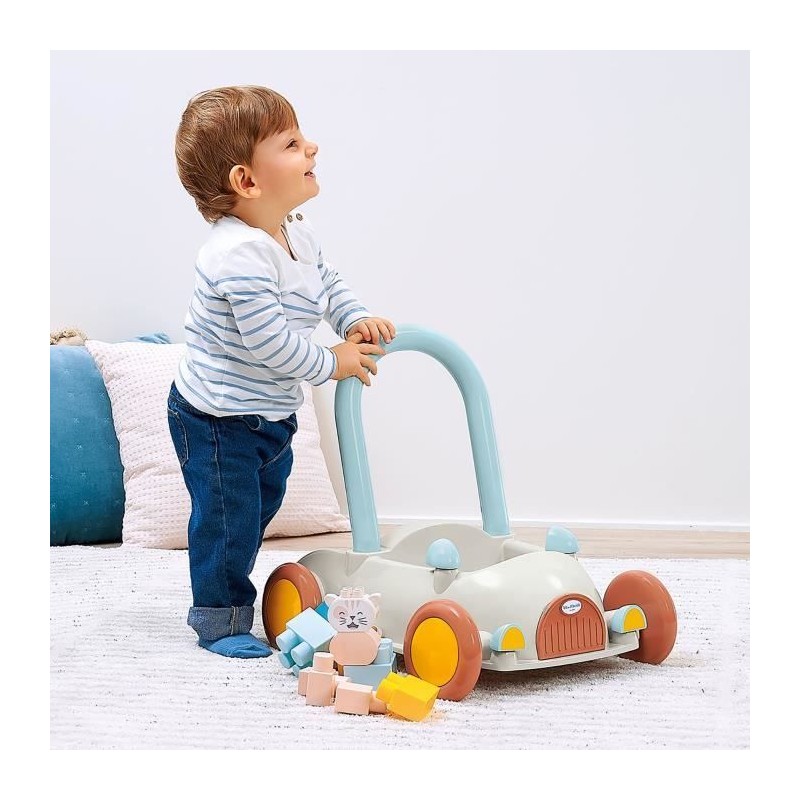 Ce chariot de marche accompagné de ses fideles compagnons est idéal pour les premiers pas. Livré avec 16 accessoires pour stimuler l'éveil et le jeu. Des 12 mois. Origine France Garantie.
