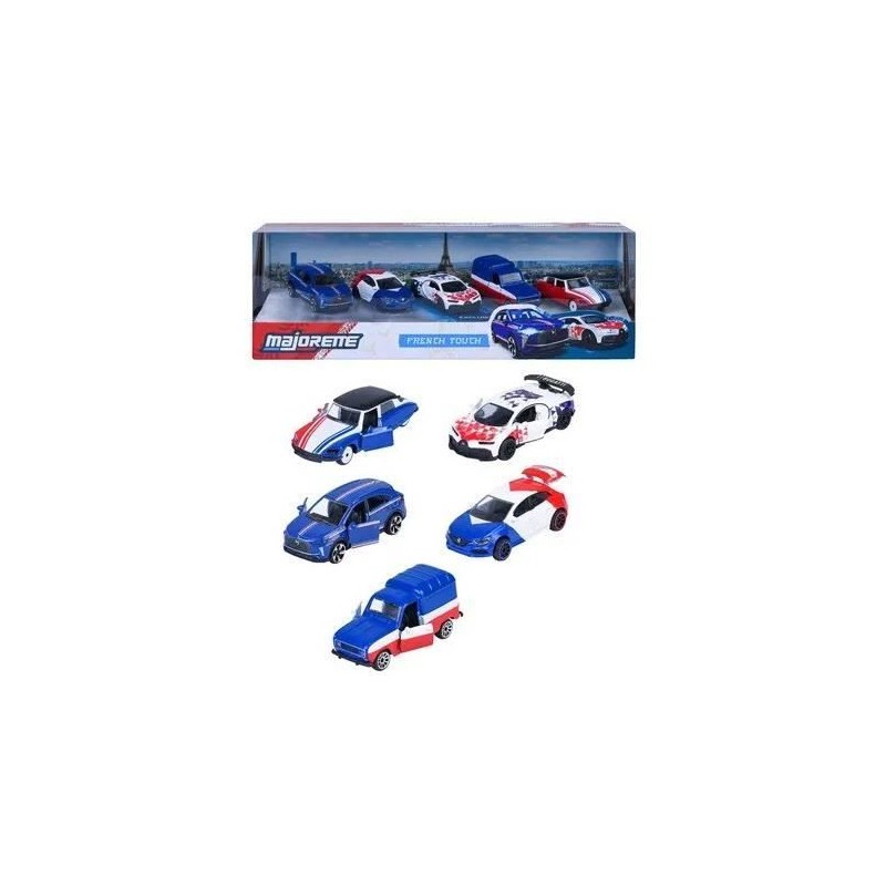Retrouvez les automobiles les plus célebres au format mini et en métal grâce a Majorette ! Véritables passionnés ou simples amateurs vous trouverez votre bonheur parmi les nombreuses gammes que présente la marque ! Ce grand coffret se compose de 5 modeles mettant a l'honneur le drapeau français. Vous serez vite séduit par ces véhicules a l'échelle 1/64eme de la french touch qui disposent de parties ouvrantes, de phares translucides et de suspensions ! N'hésitez plus a commencer une nouvelle collection ou a amuser vos enfants avec ces petites voitures ! 1 véhicule est exclusif a ce coffret. A partir de 3 ans.