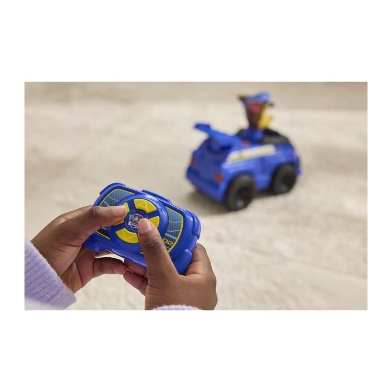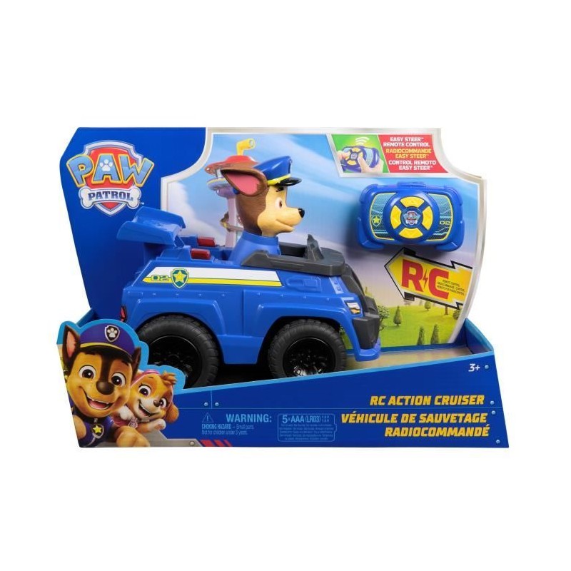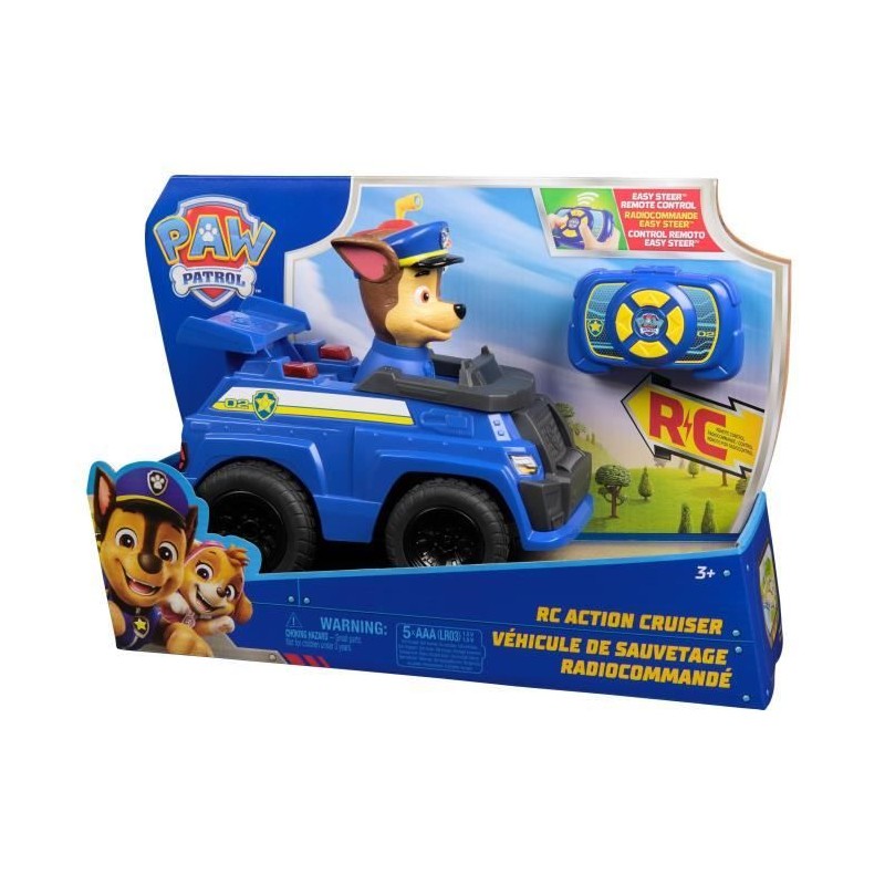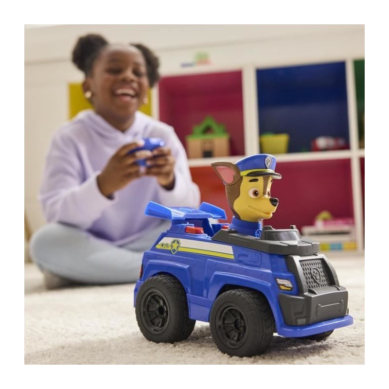 Un véhicule radiocommandé de la Pat' Patrouille pour partir en mission. Télécommande adaptée aux petites mains et simple d'utilisation. Avec des effets lumineux sur la voiture lorsqu'elle roule. Fonctionne avec 2 piles LR03 pour la télécommande et 3 piles LR03 pour le véhicule (non fournies). A partir de 3 ans.