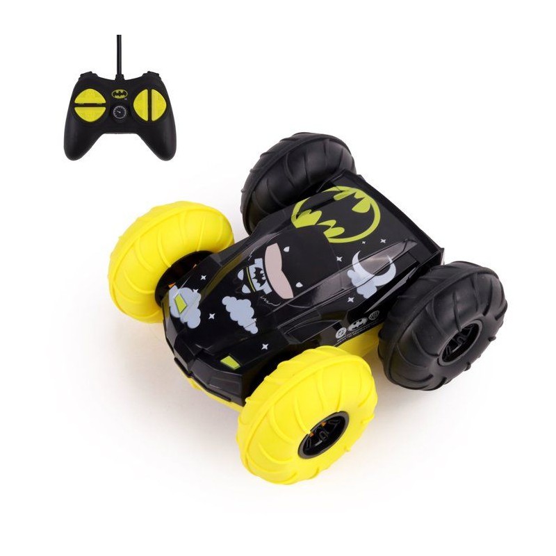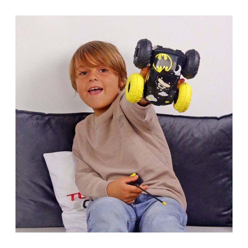 Place au spectacle ! Cette voiture flip Batman vs Robin roule sur ses deux faces, fait des cascades incroyables et atteint 15 km/h. Ses pneus souples absorbent tous les chocs. Facile a piloter pour les petits des 3 ans. Résistante, dynamique et spectaculaire : un cadeau qui fait briller les yeux !