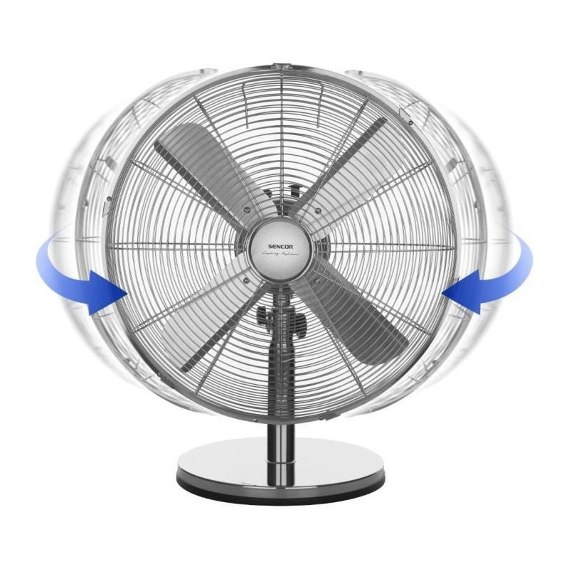 Le ventilateur de bureau Sencor SFE 4040SL offre un diametre de pales de 40 cm et une puissance de 50 W. Avec 3 niveaux de vitesse et une oscillation automatique a 90°, il assure un confort optimal. Son design en métal et son fonctionnement silencieux a 64 dB en font un choix idéal pour votre bureau ou votre maison.