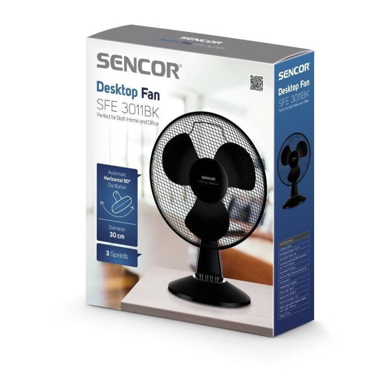 Ventilateur de bureau - Sencor - SFE 3011BK - 3 vitesses - Oscillation 90° - 30 cm de diametre