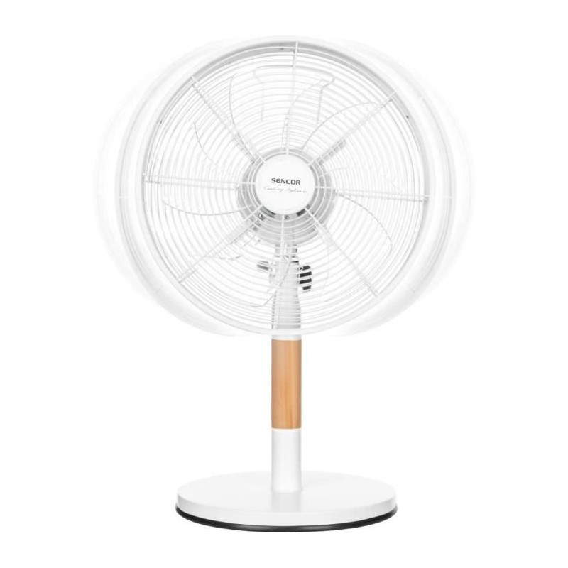 Ventilateur de bureau - SENCOR - SFE 3080WH - 3 vitesses - Oscillation 80° - Design métal et bois