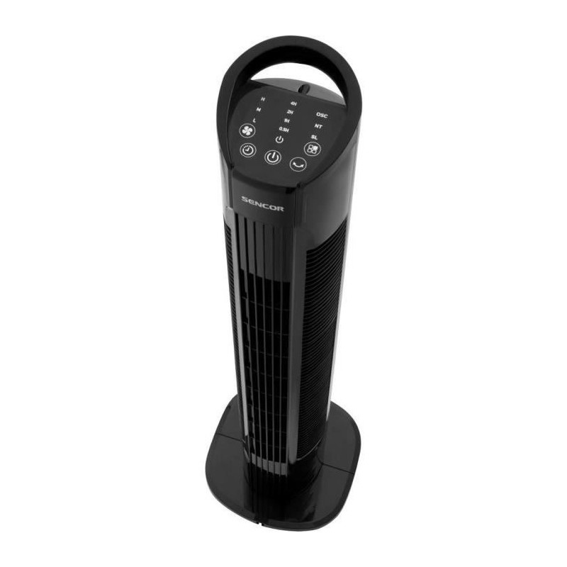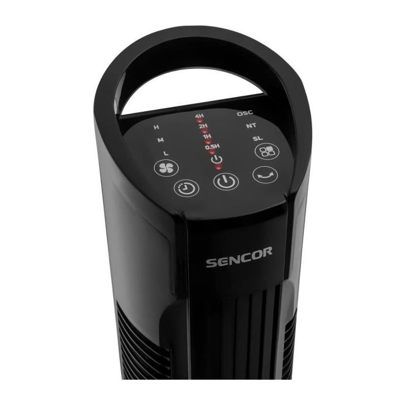 VENTILATEUR TOUR Sencor SFT 3113BK - Taille : 31" 3 vitesses de fonctionnement (faible / moyenne / élevée) Oscillation horizontale / oscillation Panneau de commande tactile Télécommande Minuterie Débit d'air max. : 7,38 m3/min Vitesse de débit d'air max. : 0,68 m/s Niveau sonore max. : 56,1 dB Longueur du cordon d'alimentation : 1,6 m Puissance : 50 W Hauteur : 31" / 78,5 cm Longueur du cordon d'alimentation : 1,6 m Poids : 1,99 kg