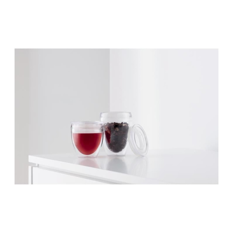 Set 2 gobelets - BODUM - Pavina To Go - Double paroi plastique - Couvercle hermétique - 20 cl - Transparent