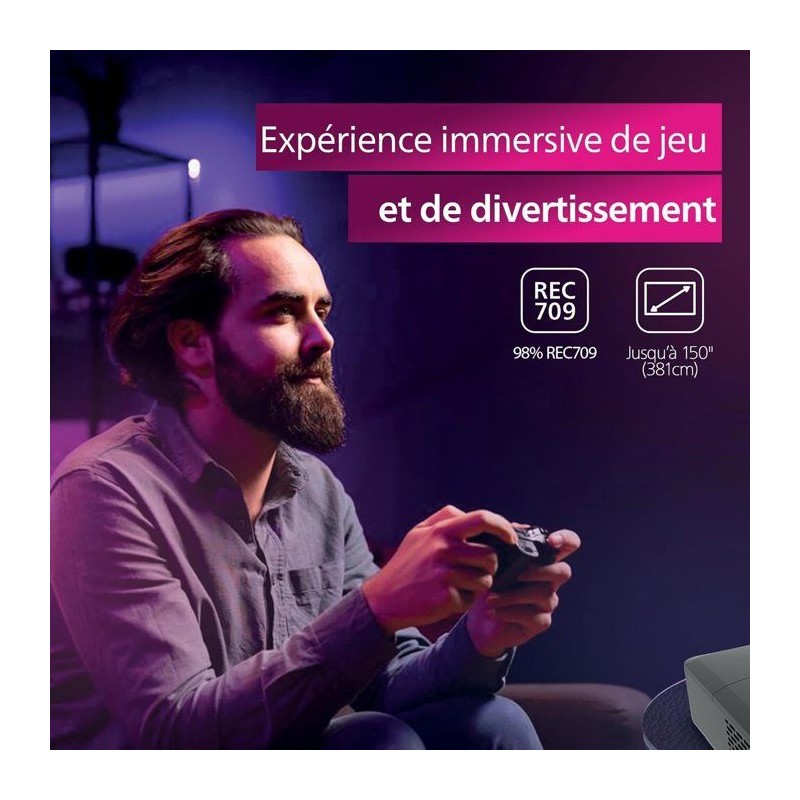 Transformez votre expérience de divertissement a domicile avec le projecteur intelligent Philips GamePix 800 — le choix idéal pour des visuels époustouflants dans n'importe quel environnement. Grâce a une luminosité impressionnante de 2500 lumens ANSI, ce projecteur puissant offre des images haute définition éclatantes, parfaites pour les jeux et les expériences cinématographiques. Plongez dans une résolution Full HD de 1920×1080, un rapport de contraste natif de 1500:1 et une précision colorimétrique de 98 % Rec.709, sublimée par le systeme de gestion des couleurs (CMS), qui donne vie a chaque détail avec des couleurs nettes et éclatantes. Vivez une expérience de jeu ultra-réactive grâce au taux de rafraîchissement de 120 Hz et au délai d'entrée ultra-faible de 8 ms, conçu pour garder une longueur d'avance. Profitez d'un mouvement fluide, d'un flou réduit et d'un contrôle précis pour une expérience de jeu améliorée. Trois modes de jeu indépendants optimisent les réglages selon que vous jouez a des titres d'Action, d'Aventure ou de Sports. Le GamePix 800 Smart inclut Google TV, qui réunit toutes vos applications de streaming préférées, la télévision en direct et des recommandations personnalisées dans une plateforme intuitive. Avec une interface conviviale, Google TV sélectionne des séries, films et vidéos en fonction de vos habitudes de visionnage, vous suggérant des options variées comme Netflix, Hulu ou Disney+. Grâce au Google Play Store, vous pouvez également télécharger des applications, jeux et bien plus encore.