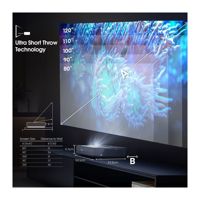 Vidéoprojecteur - HISENSE - PL1 - Laser Cinema - 4K UHD - Ultra Courte Focale - 2100 Lumens - Dolby Vision & Atmos - Smart TV V