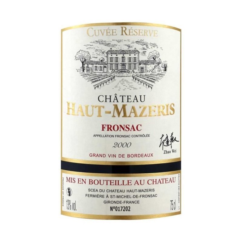 Château Haut-Mazeris 2000 Fronsac - Vin rouge de Bordeaux