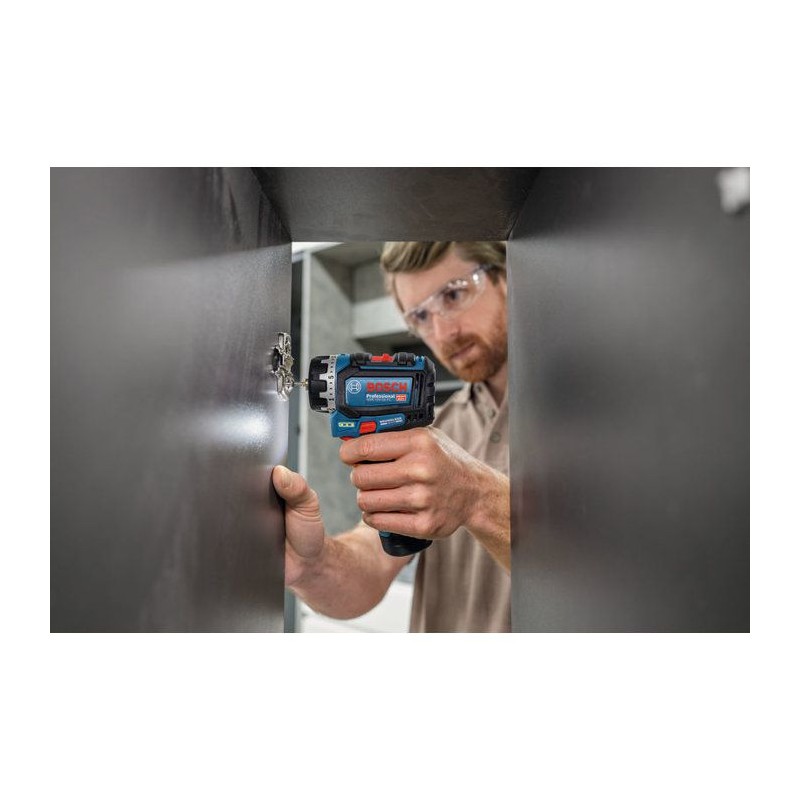 Visseuse GSR 12V-32 FC, la visseuse sans fil PRO GSR12V-32 FC offre un contrôle optimal de l'outil grâce a l'Advanced KickBack ControlCette technologie réduit le risque de blessure en cas de blocage brusque d'un foret ou meme lorsque l'outil tourne lentement autour de son axe de perçage avec une augmentation progressive de la force de maintienCette perceuse-visseuse est polyvalente grâce au systeme Bosch Professional FlexiClick avec des embouts facilement interchangeables pour percer et visserL'outil est idéal pour percer et visser dans des espaces tres restreints grâce a sa conception tres compacteAvec l'embout perforateur unique PRO GFA12-H, l'appareil peut se transformer en perforateur SDS plus, adapté au perçage au marteau jusqu'a Ø10 mm dans le bétonLe travail précis pres des bords et des murs est facilité par l'embout excentrique PRO GFA12-E, tandis que l'embout d'angle PRO GFA 12-W transforme la perceuse-visseuse en perceuse d'angle Couple, max. (dur/souple)* 32 / 21 NmTension de la batterie 12,0 VPoids sans la batterie* 0,6 kgDimensions de l'emballage (largeur x longueur x hauteur) 200 x 222 x 71 mm L-BOXX 102Renvoi d'angle GFA 12-WChargeur GAL 12V-20 ProfessionalAdaptateur mandrin métallique GFA 12-M2 batteries GBA 12V 2.0AhPorte-embout GFA 12-XPorte-embout excentré GFA 12-E