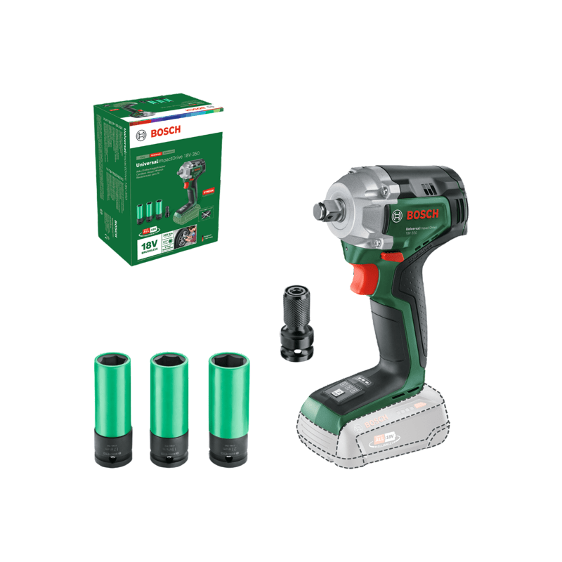 Boulonneuse sans fil BOSCH - UniversalImpactDrive 18V-350 - 18V - 350 Nm - Sans batterie ni chargeur - Avec jeu de douilles x4
