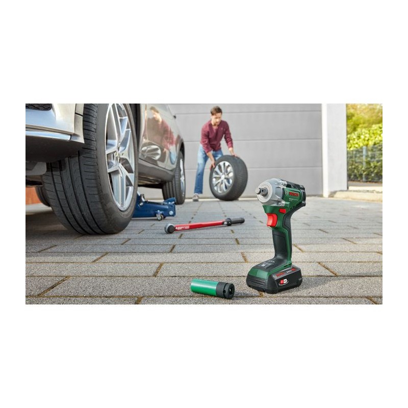 L'UniversalImpactDrive 18V-350 Bosch simplifie la vie lors des changements de roue. Cette boulonneuse sans fil a 3 positions vitesse/couple délivre un couple maximal de 350 Nm et une fréquence de frappe de 3 400 impacts/minute. Puissante et polyvalente, elle permet aussi bien de desserrer des écrous de roue récalcitrants que d'enlever des boulons rouillés ou grippés ou de visser facilement de grandes vis dans du bois. Dotée d'un porte-outil a carré mâle 1/2", cette boulonneuse accepte de nombreux accessoires compatibles et constitue une solution tres pratique pour une grande variété de tâches. Le moteur sans charbon garantit une puissance élevée et une longue durée de vie. La conception compacte de cette boulonneuse la rend facile a transporter et idéale pour les travaux en hauteur. L'électronique Syneon Bosch intégrée protege l'outil et la batterie. L'outil fait partie du systeme POWER FOR ALL 18V. Une seule batterie suffit pour tous les outils POWER FOR ALL 18V.