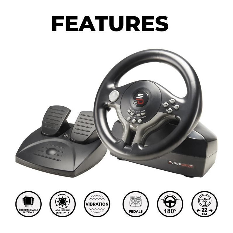 Volant de course - SUPERDRIVE - SV250 - Avec pédalier - Palettes - Vibrations - Multi-plateformes