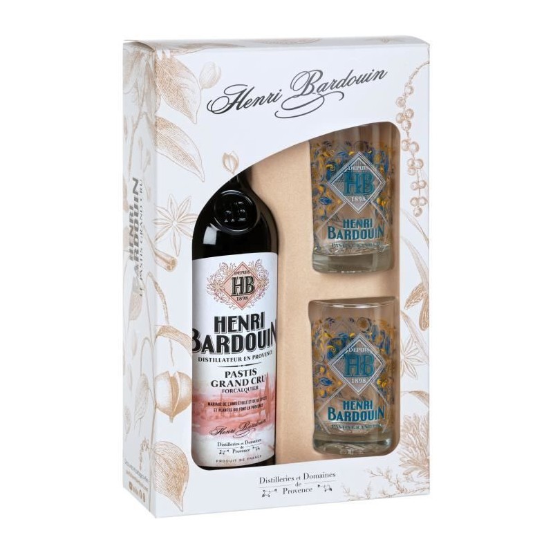 Henri Bardouin Pastis - Apéritif anisé - 45,0% Vol. - 70 cl + 2 verres