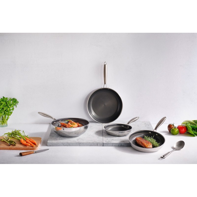 Fabriqué en 2,5 mm 3PLY-Revetement antiadhésif céramique sans PFAS avec motif hybride-Élégante poignée en acier inoxydable-Compatible avec toutes les plaques de cuisson, y compris l'induction.
