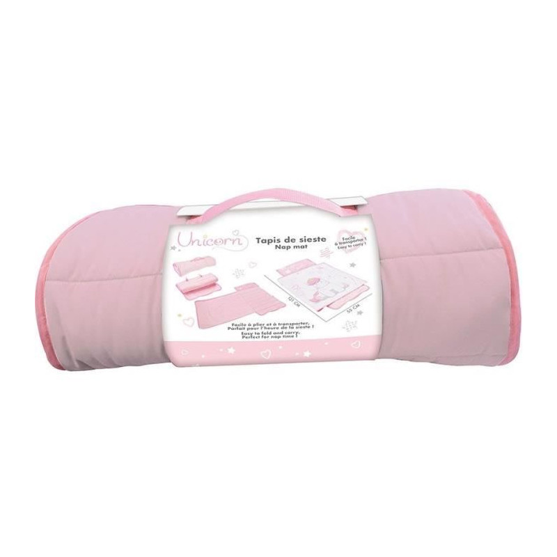 Ce tapis de sieste LICORNE int‚grant un coussin et une couverture sera l'indispensable pour vos sorties. Sa poign‚e permet un transport plus pratique ! MatiŠre en polyester. Dimensions : H 45 cm x L 50 cm x P 38 cm