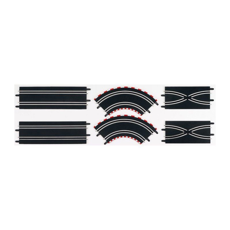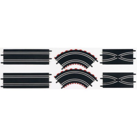 Accessories for Carrera Go !! A Kit to allow you to enlarge your circuit! It includes: - 2 curves 1/90 ° - 2 straight lines 342 mm - 2 lane change sections Scale 1/43 th.