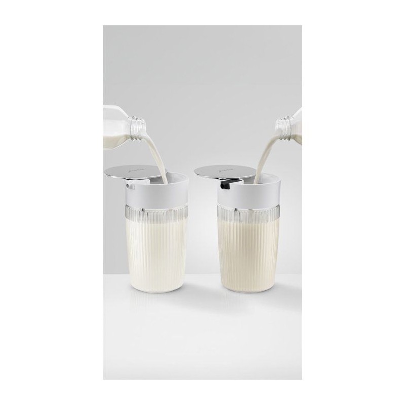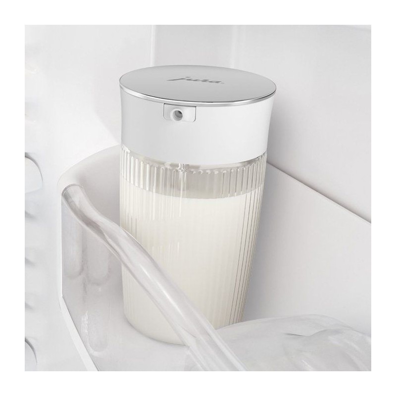 Carafe a lait - JURA - 0,5 L - 2 adaptateurs silicone - Capuchon pivotant inox poli - Verre