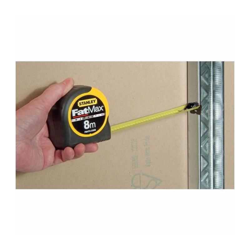 Le ruban a crochet magnétique STANLEY de 8m x 32mm est doté d'un revetement Mylar haute protection et anti-abrasion sur la totalité du ruban. Les 15 premiers centimetres du ruban sont également protégés par un revetement Blade Amor thermoplastique, limitant l'usure et réduisant de 90% les risques de casse du ruban.