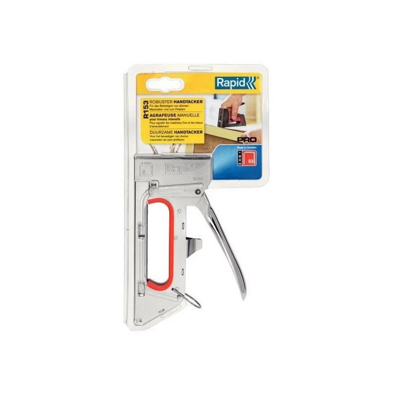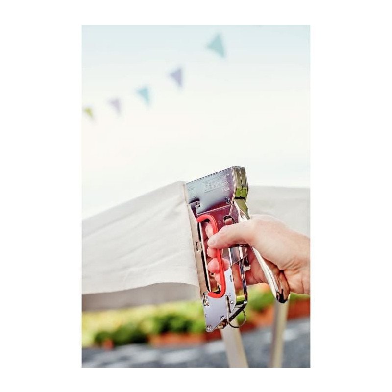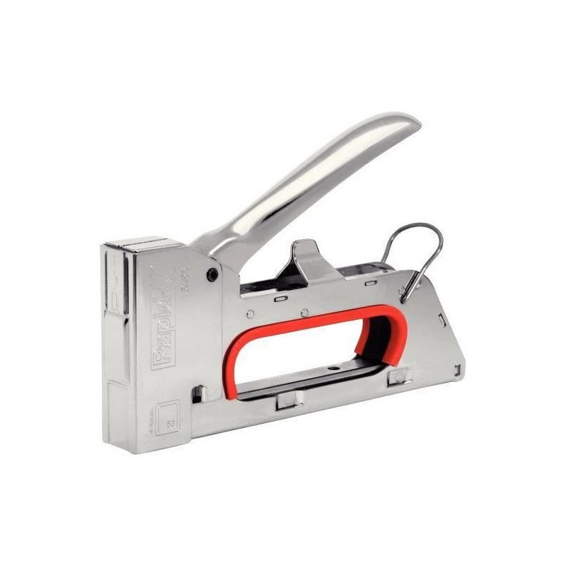 Agrafeuse manuelle tout acier a longue durée de vie répondant aux exigences élevées des utilisateurs professionnels. Pour la fixation des matériaux fins, tels que le tissus, le papier et les étiquettes, qui ne nécessitent que des agrafes courtes.
