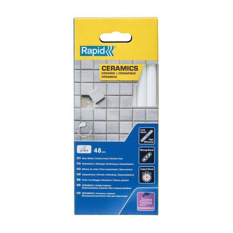 Ces bâtons de colle de 12 mm offrent un collage de haute qualité grâce a une forte teneur en résine. Idéal pour la céramique, le carrelage, la faience, la porcelaine et autres matériaux poreux. Convient aussi pour les joints d'étanchéité, le beton et la pierre. Le paquet contient 48 longs bâtons de colle, parfaits pour les travaux d'installation.