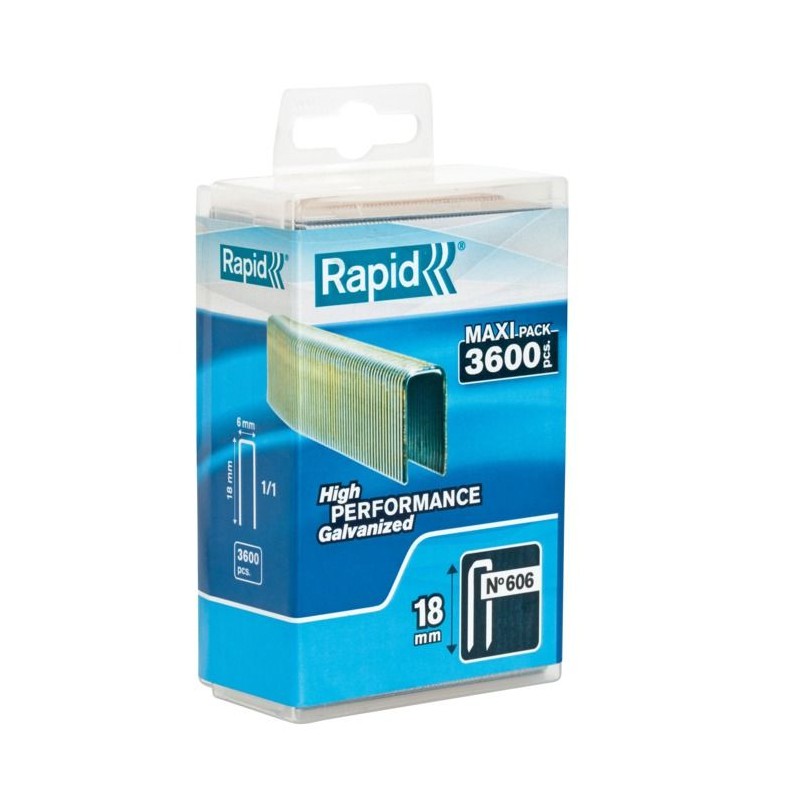 Les agrafes étroites n° 606 de RAPID, en acier galvanisé, sont idéales pour la fixation de matériaux épais. Vendues en boîte de 3600 pieces, elles mesurent 25 mm et offrent une excellente résistance grâce a leur revetement en résine. Parfaites pour une utilisation manuelle sur bois.