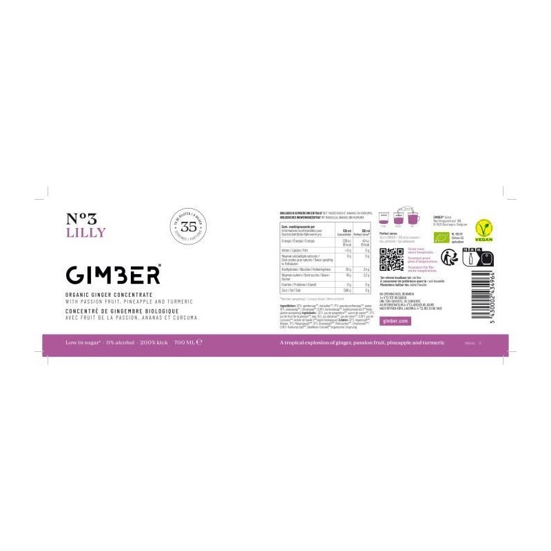 Gimber - N°3 - Lilly - Concentré de gingembre biologique avec fruit de la passion, ananas et curcuma - 700ml