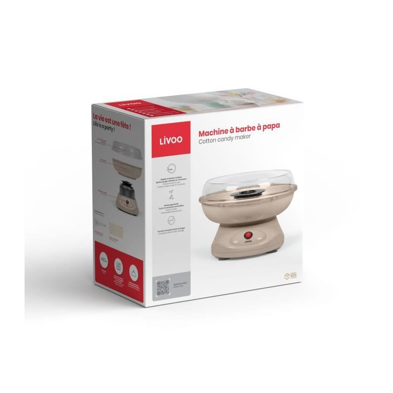 Machine a barbe a papa - LIVOO - DOM468C - 450W - Cuve et couvercle amovibles - Cuillere doseuse et 10 sticks en bambou inclus