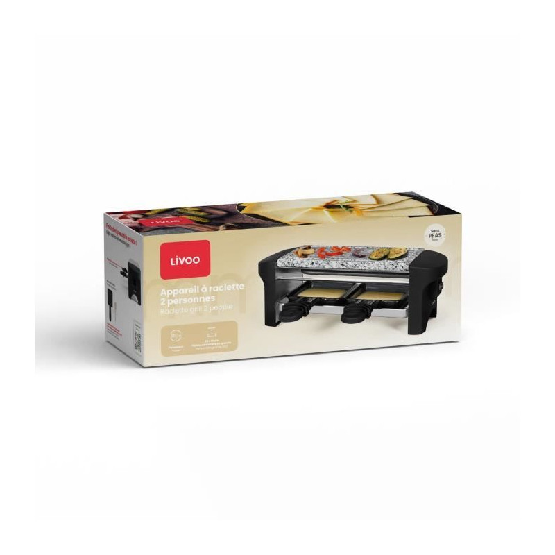 Appareil a raclette 2 personnes - LIVOO - DOC156N - 350W - 2 personnes - Plateau amovible en granite - Bouton on/off