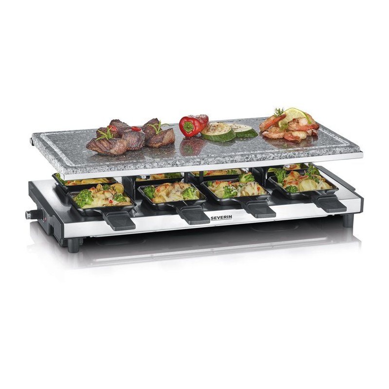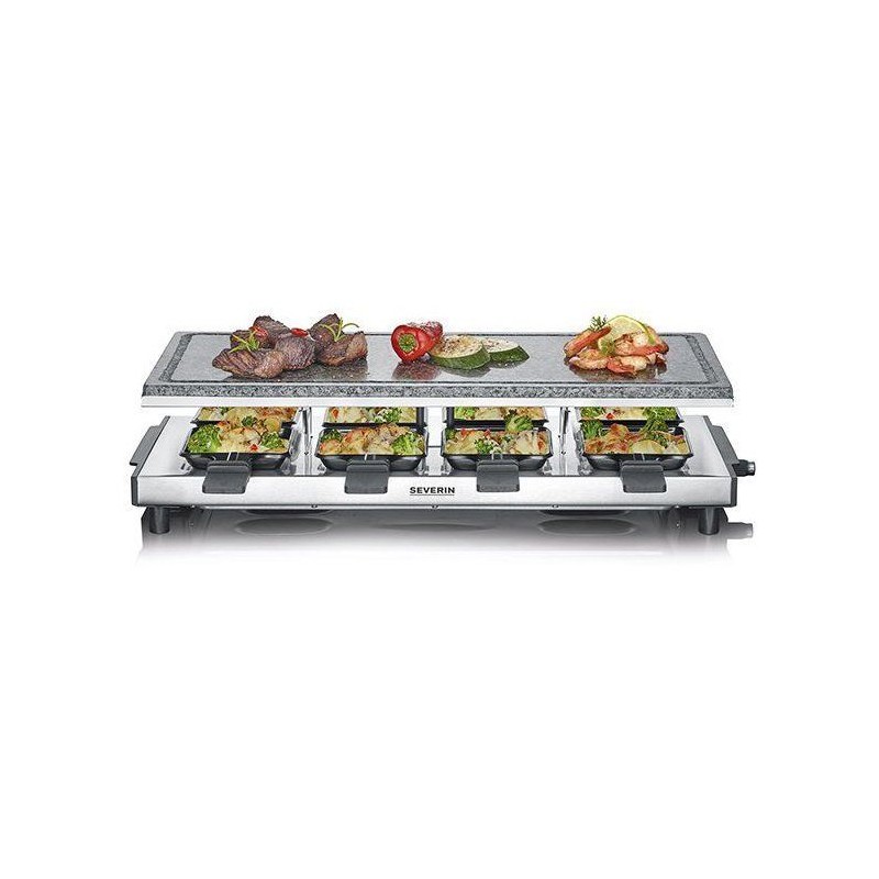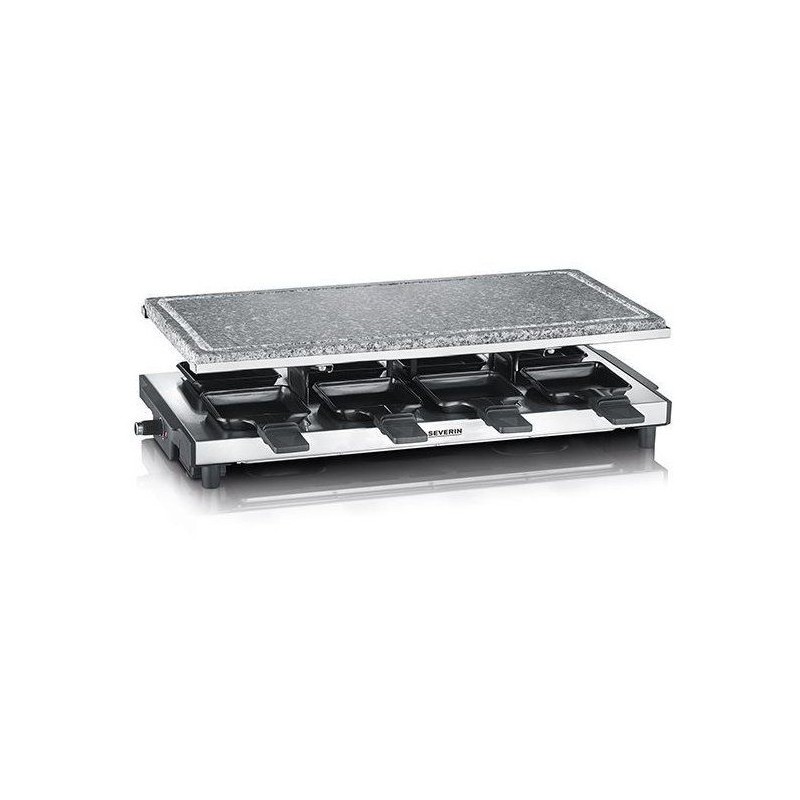 L'appareil a raclette SEVERIN RG2374 associe une pierre naturelle pour une cuisson saine et homogene a un gril performant. 8 poelons antiadhésifs pour gratinage parfait. Pierre avec rainure anti-graisse, thermostat réglable et structure inox robuste. Parfait pour repas conviviaux jusqu'a 8 personnes.