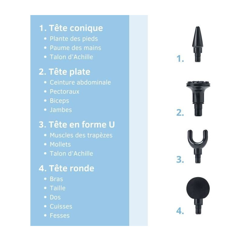 Pistolet massant - LITTLE BALANCE - Sport Relax - 6 vitesses - 4 tetes - Noir