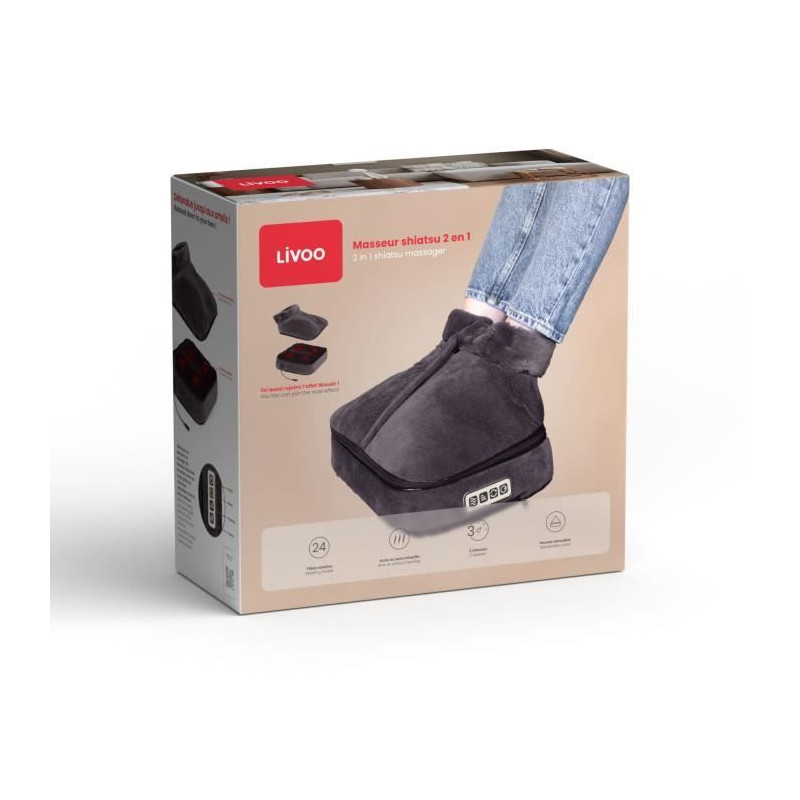 Masseur shiatsu 2 en 1 - LIVOO - DOS204 - Pieds et dos - 24 tetes - 3 vitesses - Avec ou sans chaleur - Gris