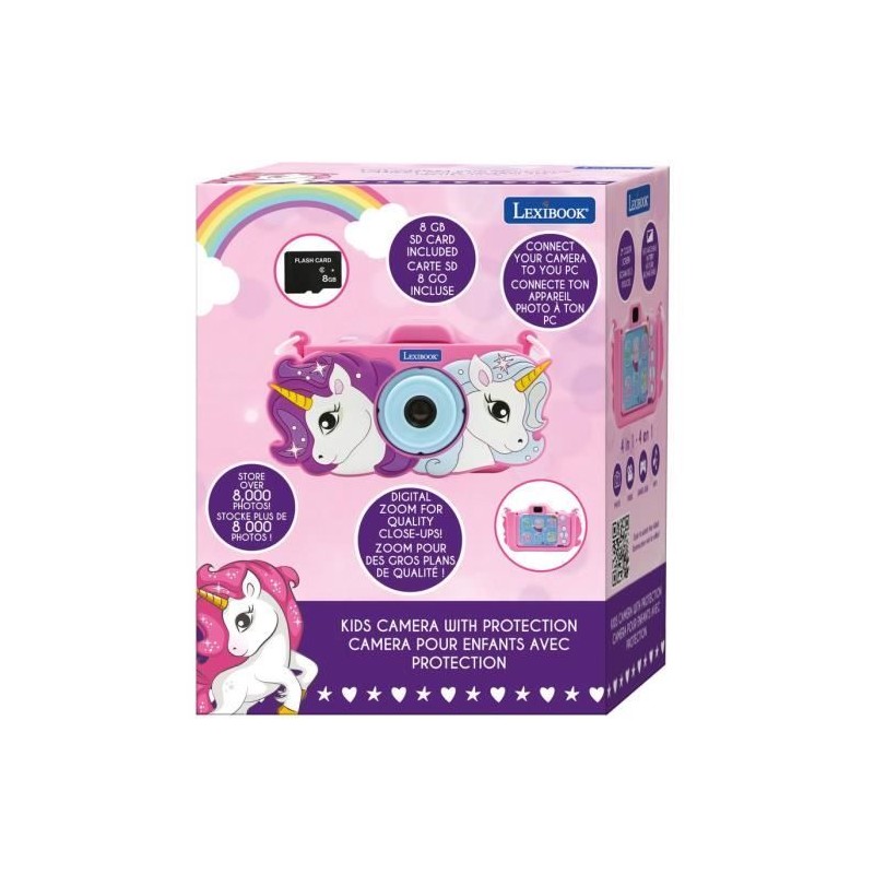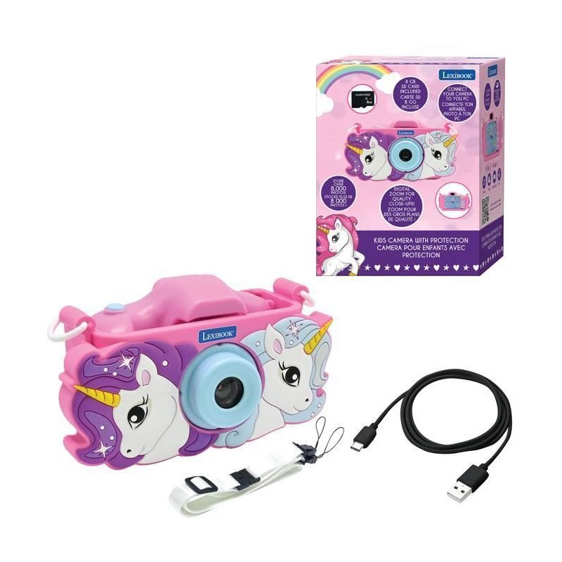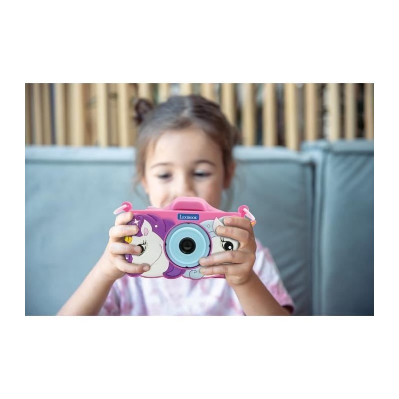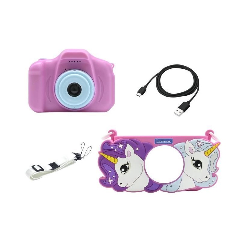 Découvrez la Camera pour enfants LEXIBOOK avec une protection Licorne. Conçue pour les enfants a partir de 3 ans, elle est rechargeable par câble USB-C et idéale pour une utilisation en intérieur. Sa belle protection en silicone assure une durabilité optimale.