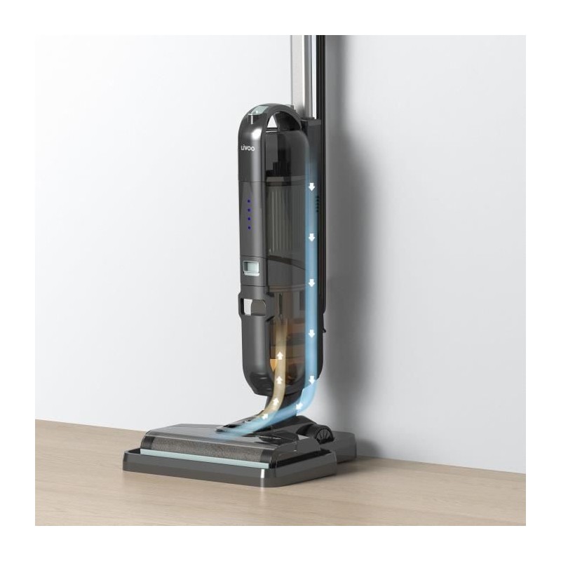 Aspirateur balai laveur filaire - LIVOO - DOH143 CLEAN'UP - 600 W - 2 en 1 - 15 kPa - 80 dB - 2 réservoirs - Gris