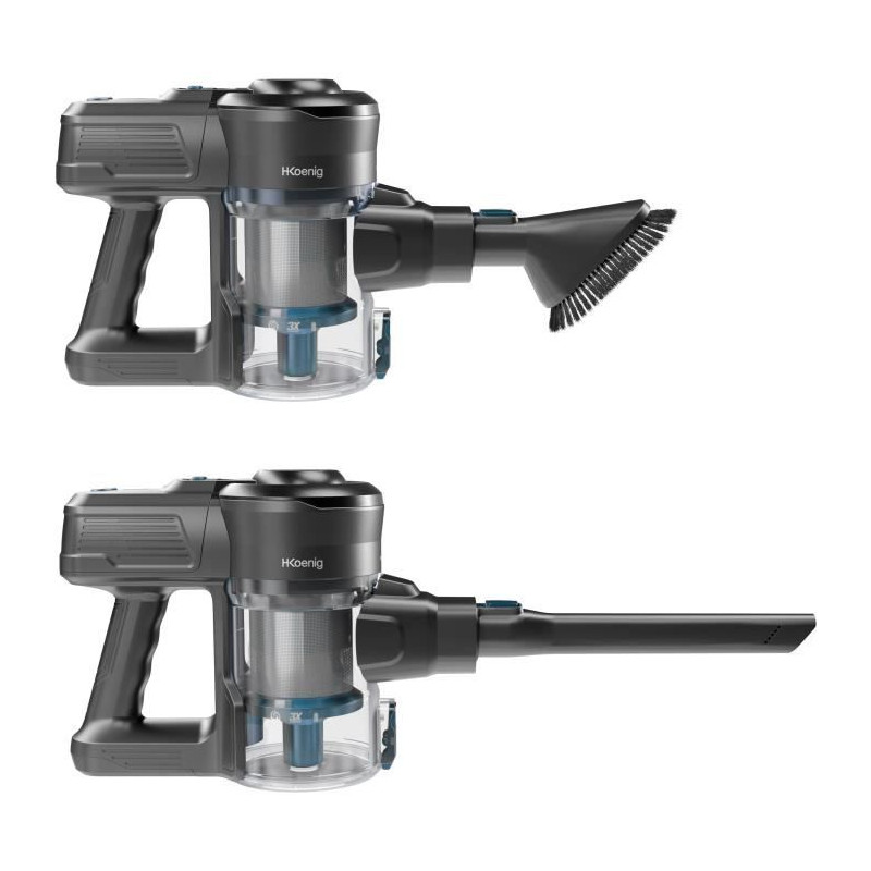 Découvrez l'aspirateur balai sans fil 2 en 1 H.KoeNIG UP610. Avec une puissance de 150 W et une autonomie de 50 minutes, il est idéal pour un nettoyage efficace. Léger et ergonomique, il dispose d'un collecteur de 0,8 L, de trois vitesses d'aspiration et d'accessoires pratiques pour un nettoyage complet du sol au plafond.