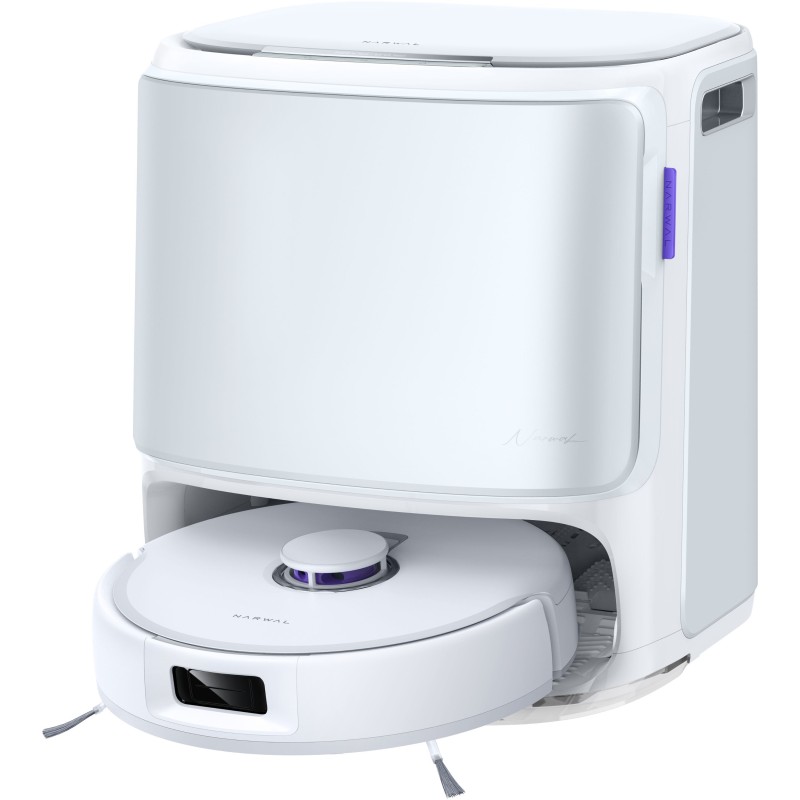 Narwal Freo Z10 : un nettoyage intelligent et sans enchevetrement. Avec son systeme DualFlow et ses brosses anti-enchevetrement, il élimine cheveux et saletés sans effort. Sa puissance d'aspiration de 15 000 Pa et ses stratégies de nettoyage adaptatives garantissent des sols impeccables. La serpilliere EdgeReach(TM) avec extension sous pression (8 N) atteint chaque bord pour un résultat parfait. Station multifonction avec lavage a l'eau chaude, séchage a l'air chaud et sac a poussiere de 2,5 L pour 120 jours d'autonomie. Navigation LDS et lumiere structurée pour éviter les obstacles avec précision.
