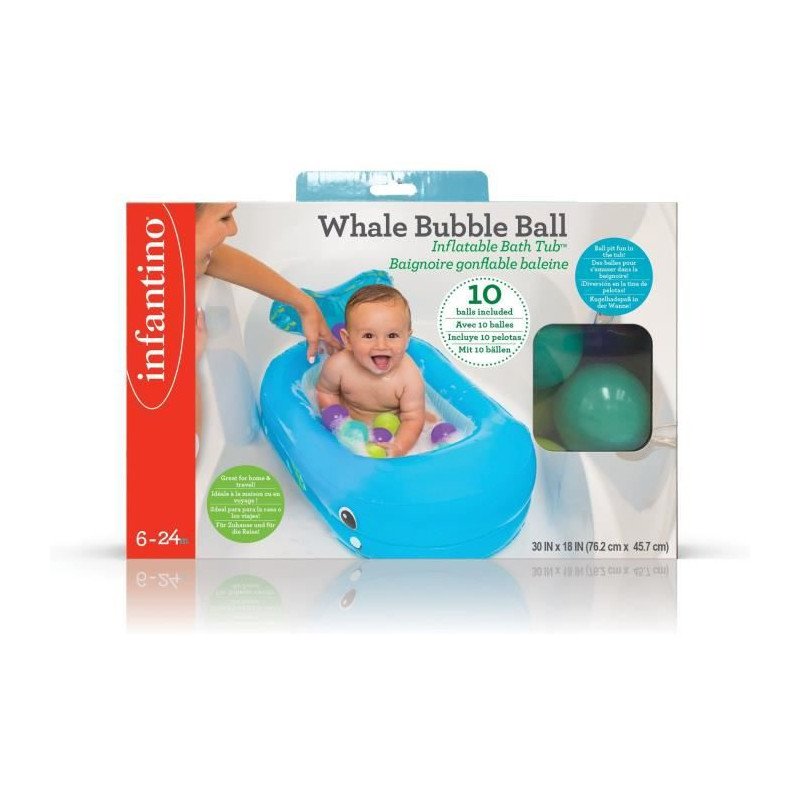 Baignoire gonflable INFANTINO Baleine - Balles de jeu et thermetre intégré - 76 x 45 cm