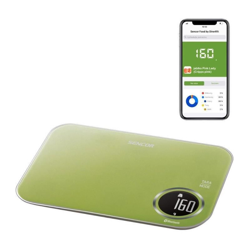 La balance de cuisine Sencor SKS 7070GG offre une capacité de pesée jusqu'a 5 kg avec une précision de 1 g. Équipée d'un écran LCD rétroéclairé et de l'application Sencor FOOD, elle permet de suivre les valeurs nutritionnelles de plus de 400 000 aliments. Fonction TARA intelligente et modes de mesure variés pour une utilisation pratique.
